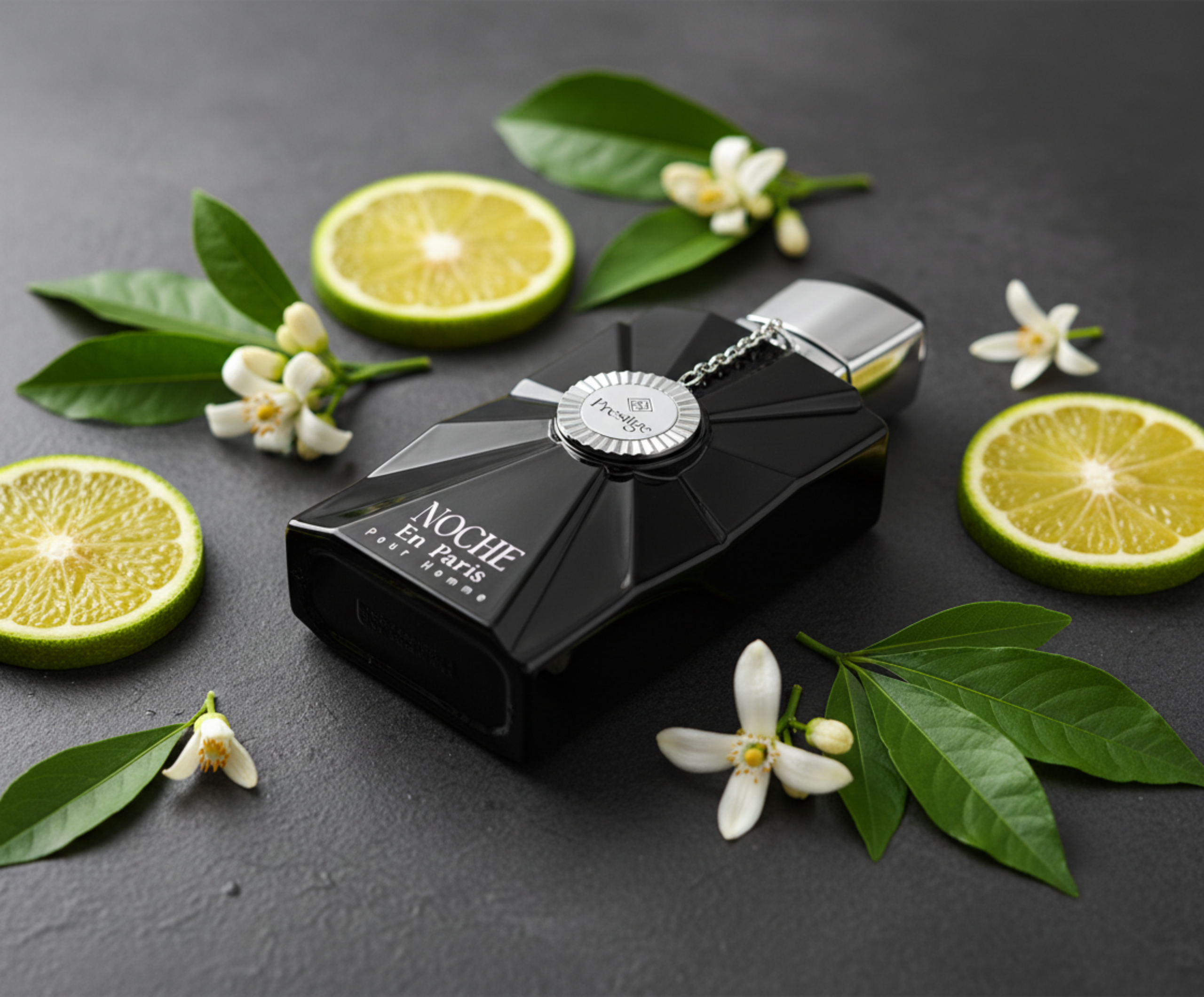 Step into bold sophistication with Noche En Paris Black, a refined extrait de parfum crafted for men who exude confidence and modern elegance. The fragrance opens with a fresh and luminous blend of Calabrian bergamot and bergamot, delivering a crisp citrus burst that feels clean, energetic, and instantly uplifting.