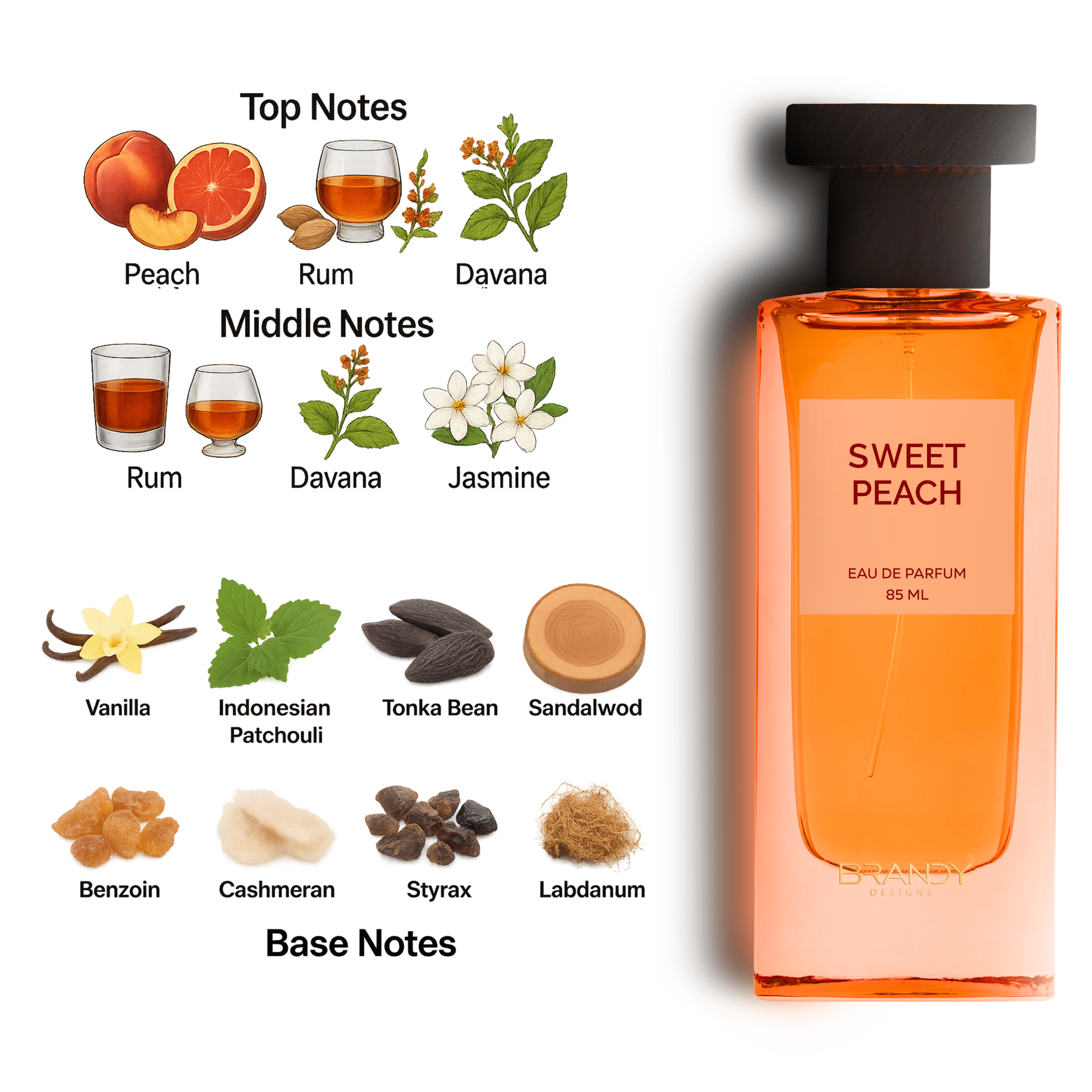 Top Notes: Peach , Blood Orange , Cardamom , Heliotrope